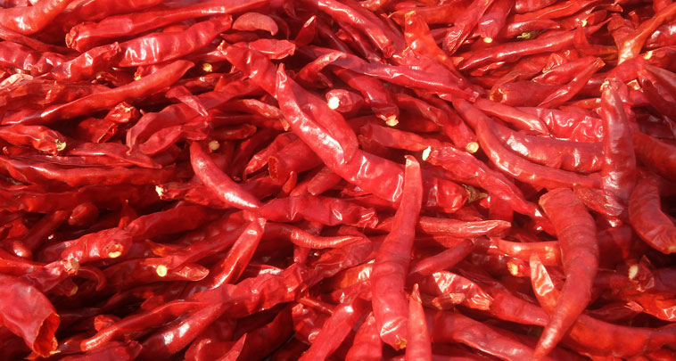 Chilies are valued principally for their high pungency and color. Almost all the states of India produce the crop. The Indian Chilli growing states are Andhra Pradesh (46%), Karnataka (15%), Maharashtra, Madhya Pradesh, Orissa, West Bengal, Rajasthan and Tamil Nadu. Indian Chilli can be grown during the entire year at one or the other part of the country. However, the major arrival season extends from February to April.